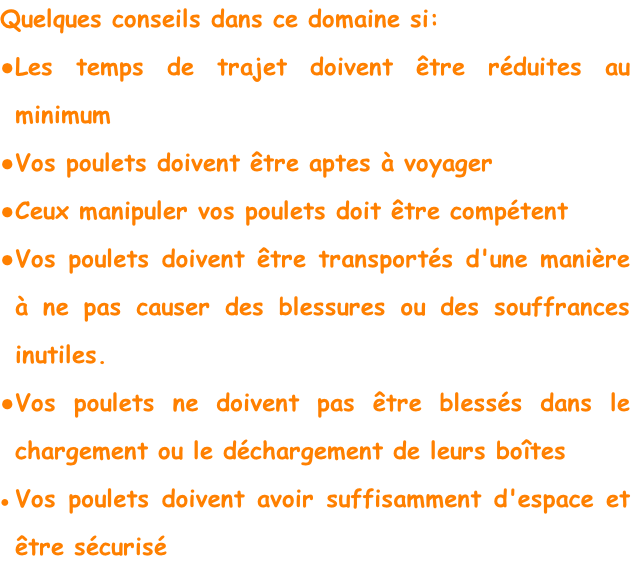 Une fois que vous avez acheté vos poulets il y a quelques règles de base qui doivent être respectées pour le transport de vos poulets à leur nouvelle maison.