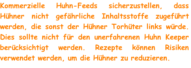 erfolgen kann. können Sie Ihre eigenen Feed Anbau ermöglicht es Ihnen, mit unterschiedlichen Mengen der einzelnen Inhaltsstoffe zu experimentieren, Ihre eigenen Feed für Ihre Hühner und ihre Anforderungen zu optimieren. Es wird dringend empfohlen (vor allem für Anfänger Huhnwächter ) eine kommerzielle Hühnerfutter zu verwenden.